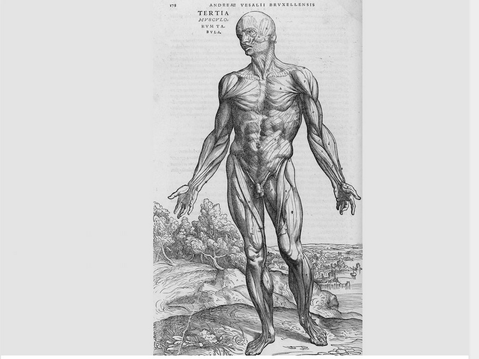Фотографија приказује илустрацију из једне од најпознатијих књига о људској анатомији, “De humani corporis fabrica” чији је аутор Холанђанин Андреас Весалиус (1514-1564).