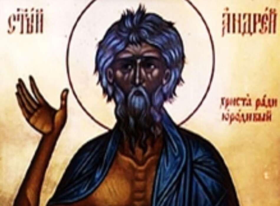 Живео је у време цара Лава Мудрог, као роб словенског порекла код једног великаша. Великаш га је дао на школе, а Андреј је био јако талентован и изучио са особитом љубављу Божију науку. Након једног сна, преокренуо је свој подвиг у јуродивост, и следећих преко 60 година по улицама спавао са псима, презрен и од просјака, борећи се са демонима, помажући људима, али све на такав начин да се не зна за његов труд и помоћ.