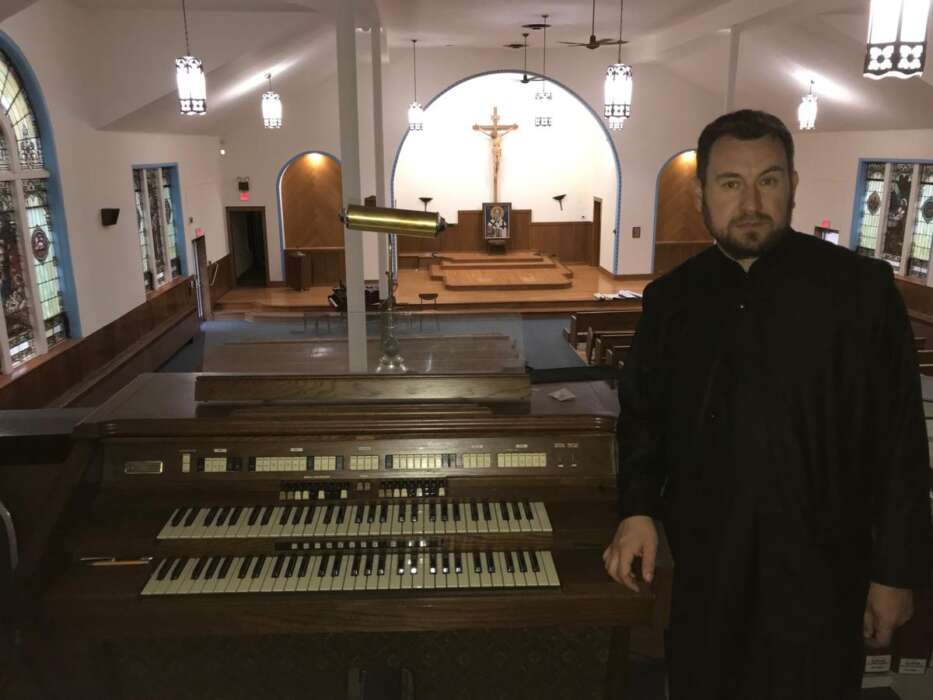 У НОВОЈ ЦРKВИ ДОВОЉНО МЕСТА ЗА СВЕ: Отац Немања Тешић испред будућег олтара и цркве Светог Николе у Лајонсу, предграђу Чикага