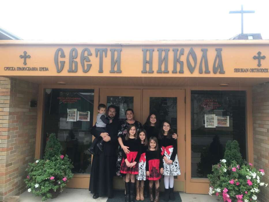 НИЈЕ НА ПРОДАЈУ: Свештеник Тешић са породицом испред старе цркве Светог Николе