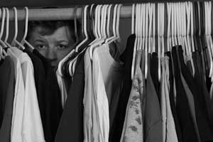 Видите, кад данас о томе размишљам, проветрен од нафталина и ослобођен страха… како да вам кажем… све се указује у једном новом светлу. Погледајте… Било нас је троје. Она, њен муж и ја у шифоњеру. Коме је било најтеже? Мужу? Не, он ништа није знао! Мени? Не, ни мени… Слушајте, па ја сам ипак побегао… ја сам се сакрио! ОНА, она је поднела све страхоте те дуге, дуге ноћи!