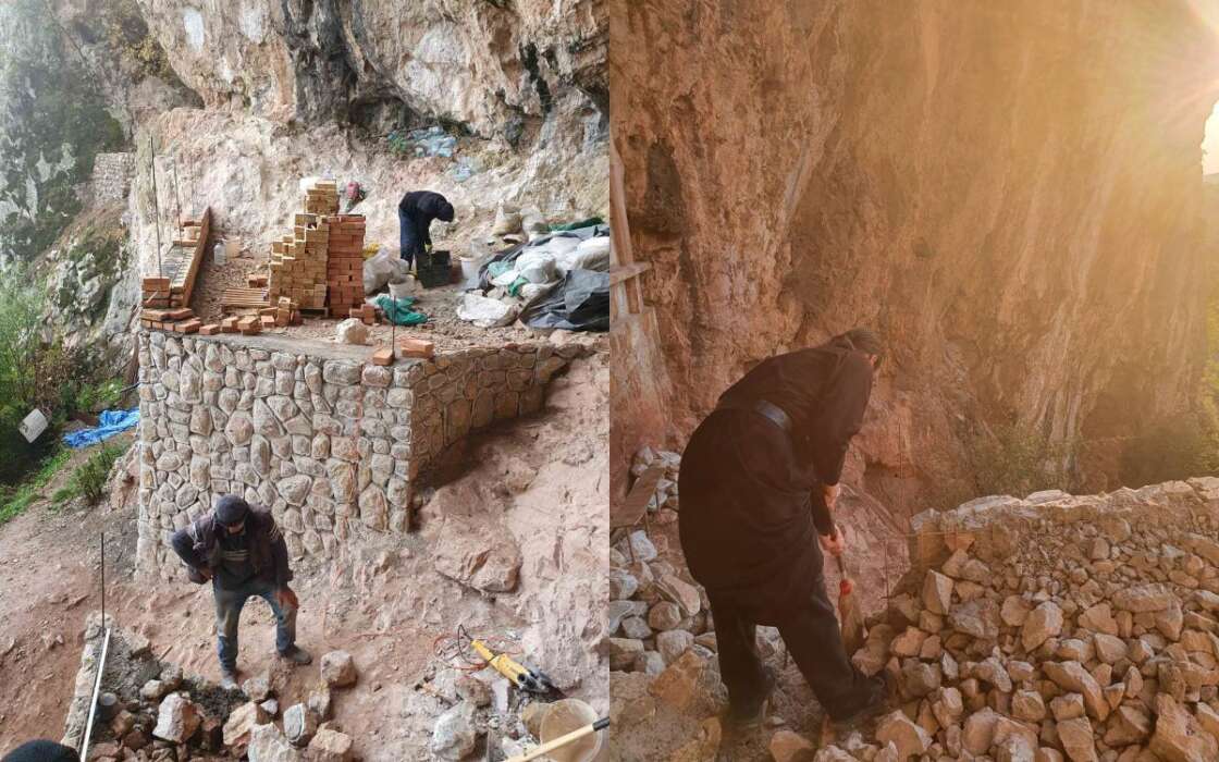 “Други део стазе је стеновит и туда се може попети само уз помоћ сајли. На леђима сју добровољци износили сав материјал од цемента, воде, песка и све до преко 3000 цигли. До сада је урађен потпорни зид и проширен је плато за све оне који желе да посете ову светињу, постављена нова ограда”, рекао је Бранко.