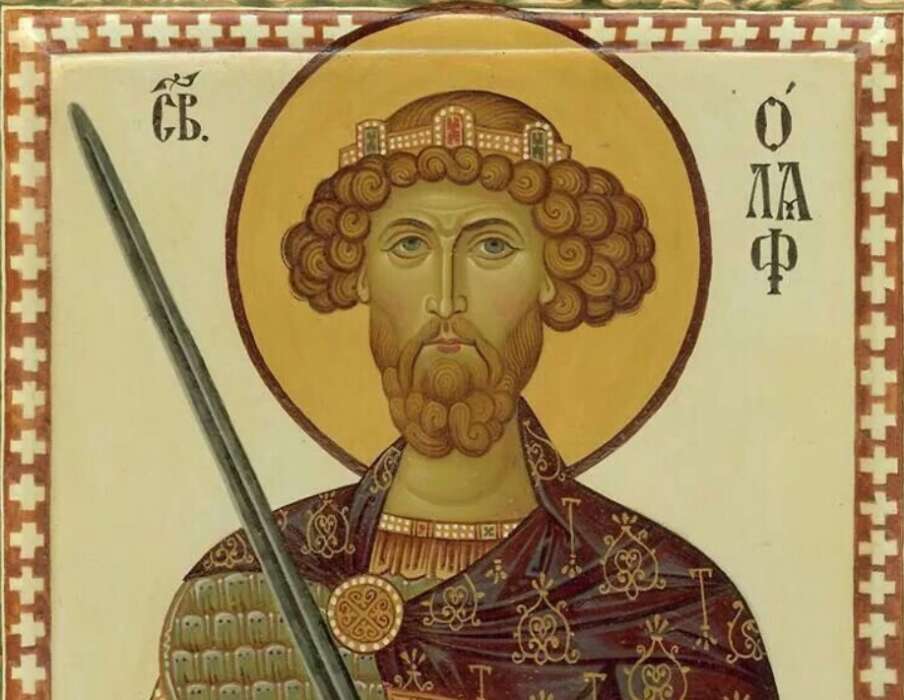 Свети Олаф(Харолдсон) се родио 995. године. Био је унук краља Харолда Лепокосог ујединитеља Норвешке. Још као дванеастогодишњак Олаф се придружио викинзима и заједно са њима учестовао у освајачким и пљачкашким походима. Учестовао је и убиству монаха, од који су неки после проглашени за светитеље. Норвешка је тада била још увијек паганска држава. Негдје 1013. године Свети Олаф прима Свето крштење у Француској. Од тада се све више посвећује молитви. Установљује законодавство у држави гдје се забрањуњу пљачке, убиства, као и паганска вјеровања и обичаји. Био је без обзира на то врло благ владар, што су искористили његови непријатељи потплативши његове подређене против свога краља. Због новонастале ситуације одлази најприје у Шведску, па у Русију, гдје остаје годину дана. Овај период боравка у Русији је Светом Олафу донио велику духовну и унутрашњу корист.Иако није мислио да се враћа у своју државу, након једног сна у којем му се јавио његов предак, одлучује се за повратак.Након повратка приликом борбе бива убијен 1030.године. Свети Олаф се прославио бројним чудима. Међу њима занимљива су два чуда у Русији, гдје је након изношења његове иконе од стране викиншког свештеника спасен град Новгород. Друго чудо је исцјељење нијемога човјека у цркви Светог Олава. У једној руској молитви Пресветој Тројици се помиње име Светог Олафа. Велики број храмова широм свијета је посвећен овом светитељу.
