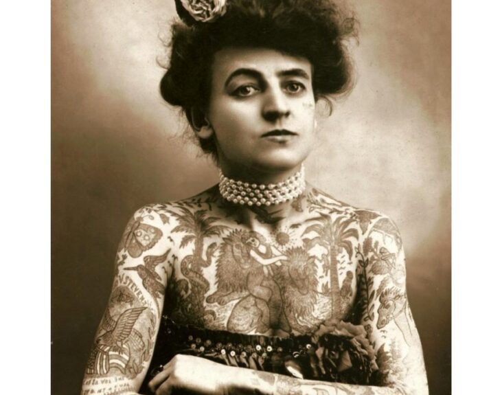 Мод Вагнер (рођ. Стивенс) је рођена у Kанзасу 1877. године и свој позив нашла је у циркусу наказа, где је радила као акробата, путујући по Америци. Номадски циркуски живот одредио је њену судбину, јер је на једном од путовања упознала свог будућег мужа. Она је класична жена из едвардијанског периода, али тело прекривено тетоважама и хаљина без бретела, чине да Мод Вагнер изгледа као да се родила цео један век касније. Прва жена тату мајстор у Сједињеним Америчким Државама је са својим супругом утабала пут уметности цртања по телу, која ће неколико деценија касније достићи огромну популарност.