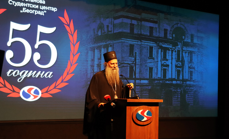 – Вечерас сам искрено дирнут због чињенице да у име Цркве, али и у име сви нас овде присутних, као и свих прошлих, садашњих и будућих студената, честитам јубилеј 55 година постојања Студентског центра, а нарочито због чињенице да сам и сам био један од многих који је уживао љубав и пажњу Студентског центра, као становник Студентског града, првог блока и собе 41, као и још неки великодостојници наше Цркве, многи свештеници и монаси, као и многи који су учинили да наш народ данас буде оно што јесте, а то је свој, поносан и народ који је обогатио и светску науку и светску културу, али истовремено и био и јесте обогаћиван свим добрим идејама које су долазиле са свих страна – подсетио је патријарх Порфирије на почетку свог обраћања и нагласио: