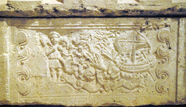 У плитком рељефу саркофага налазе се слике из старозавентог предања о Јони, као и приказ Христа као доброг пастира. Та метафора често је употребљавана у историји, као симбол Господа који на раменима носи јагње.