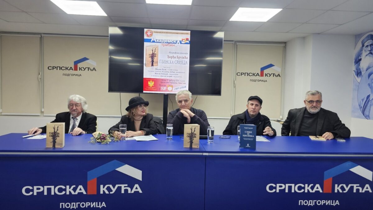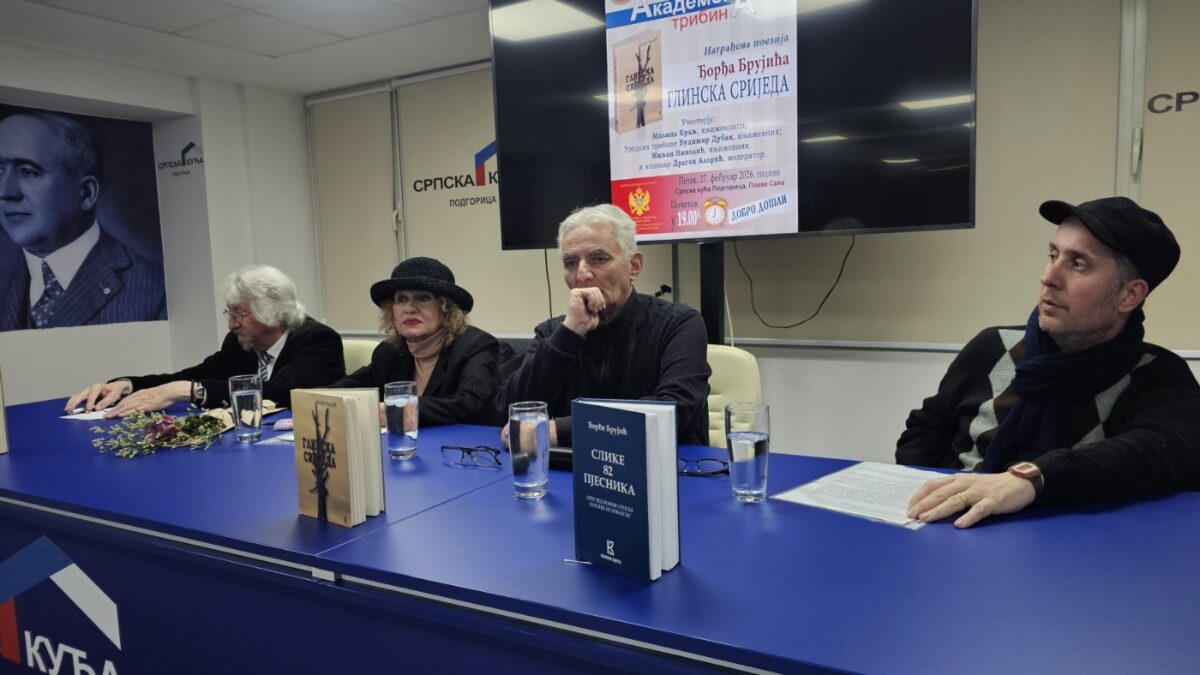 Конференција српских националних организација из земаља региона, у Српској кући у Подгорици, организовала је још једну Академску трибину, у оквиру које је представљена награђивана збирка поезије Ђорђа Брујића „Глинска сриједа“.