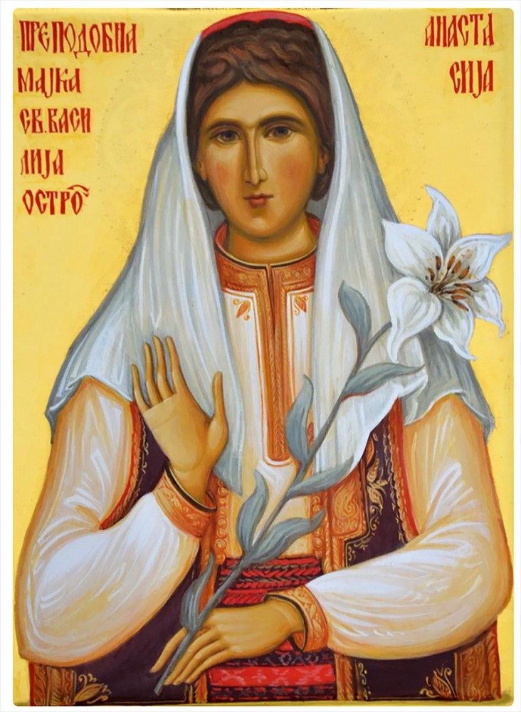 И поред чињенице да се мало зна о детаљима из живота Ане Јовановић, њена личност није заборављена у књизи вечног живота, нарочито јер се ради о побожној мајци која је родила, одгајила и на службу Богу предала свог сина јединца, маленог по узрасту, али великог по мудрости и спремности на свецело служење Богу. Ана Јовановић је себе уписала не само у вечну књигу, већ у књигу свих срдаца која непрестано узносе молитве Светом Василију Острошком, молећи његово посредништво и заступништво пред Господом. Светлост предивне и благословене радости огрејала је Ану на дан када је родила свог сина, 28. децембра 1610. године у Мркоњићима у Поповом Пољу. Била је то побожна, тиха, молитвена, и трудољубива мајка хришћанка, мајка која се васцелим својим бићем трудила да честити дом Јовановића не поклекне пред бројним искушењима, већ да сва искушења побеђују честитошћу, трудом и побожним животом, чинећи тако да њихов дом постане Црква у малом. Прву школу побожности малени Стојан научио је управо у топлом и љубављу испуњеном окриљу своје мајке, која га је научила молитвеном правилу и основним хришћанским врлинама. Њена мајчинска љубав и усрдна молитва за своје чедо била је толико јака да је Стојан већ у дечјем узрасту био пример честитости и побожности не само у њиховом скромном дому, већ и целом поповопољском крају. И поред овог претешког животног крста, Ана је Богу благодарила на сваком новом дану, узносила је благодарност Богу јер је имала у уму и у срцу речи апостола Павла који вели: Све могу у Христу Исусу који ми моћ даје! Ове речи Ана је проводила у свом животу, јер није било животне препреке и тешкоће коју она није превазилазила, управо полажући наду на Господа. Молитвама Свете Блажене Ане, мајке Светог Василија Тврдошког и Острошког, Господе Исусе Христе, Сине Божји, помилуј нас!