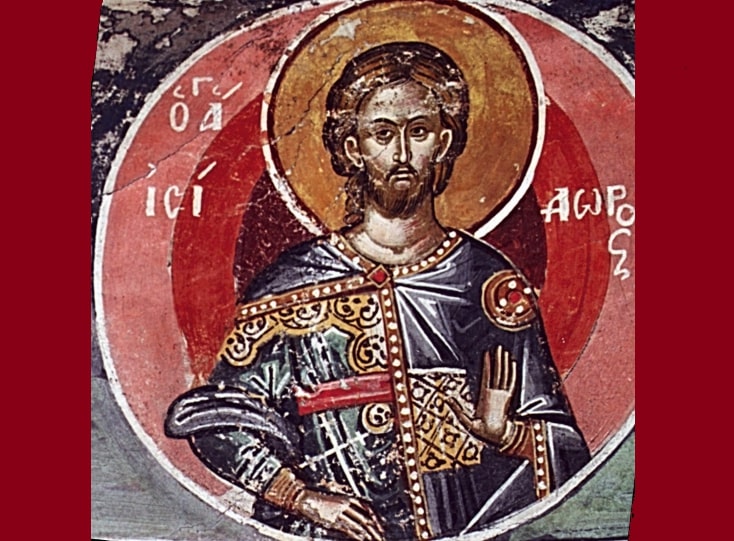 Прве године Декијева царовања изиђе заповест од цара да се у целој римској царевини попишу и преброје војници и саберу у пукове. Због тога пристадоше уз острво Хиос лађе војводе Нумерија, да би покупиле младиће за војну службу. У то време на острву Хиосу живљаше Исидор, родом из Александрије, снажан телом и храбар духом, а хришћанин по вери. Он провођаше богоугодан живот, јер се стално подвизаваше у посту, уздржању, целомудрију и у свима добрим делима. Он се одлучно удаљаваше од таштина и сласти овога света, и избегаваше незнабожачке нечистоте. Због своје снажности и храбрости он би узет у војску у Нумеријев пук.