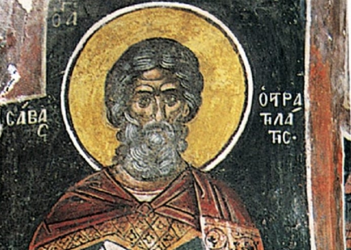 У време цара Аврелијана живљаше овај славни Сава у Риму, и имаше војводски чин. Пореклом беше од Готског племена. Посећиваше често хришћане по тамницама и помагаше их својим имањем. Због велике чистоте и поста даде му се од Бога власт над духовима нечистим. Када би оптужен као хришћанин, он смело стаде пред цара, баци преда њ свој војнички појас, и јавно исповеди Христа Господа. Би мучен разним мукама, шибан, гвожђем струган, свећама опаљиван. Но он не подлеже тим смртоносним мукама, но јави се жив и здрав. Његови другови, војници, видећи очигледно да Бог помаже Сави, примише веру Христову. Њих 70 на броју одмах бише по наредби царевој посечени. Светом Сави јави се у тамници сам Христос Господ у великој светлости и крепљаше мученика Свога. Потом Сава би осуђен на смрт потопљењем у воду. И бачен би у реку дубоку, где предаде душу Богу, 272. год. И душа му оде ка Господу, коме је веран остао у мукама многим.
