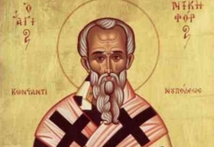 Племић цариградски. Отац му Теодор био високи чиновник на двору царском, богат и благочестив. Никифор службоваше неколико година у двору у истом звању као и отац његов. Но видећи сву сујету светску, он се удаљи од обале Босфора и тамо сагради манастир. Манастир му се убрзо напуни монасима, а он управљаше манастиром не хотећи сам примати монаштва под изговором да је недостојан, мада је у свему служио као узор свима. Учествовао је пре тога на VII васељенском сабору као мирјанин, по вољи цара и патријарха, и користио Сабору много својим изврсним познавањем Светога Писма. Када умре патријарх Тарасије, Никифор би изабран за патријарха насупрот својој вољи. Одмах по избору прими чин монашки и све остале чинове редом, и би 806. године устоличен у Светој Софији као патријарх. То је било у време цара Никифора, који убрзо по томе оде у рат на Бугаре, и погибе.