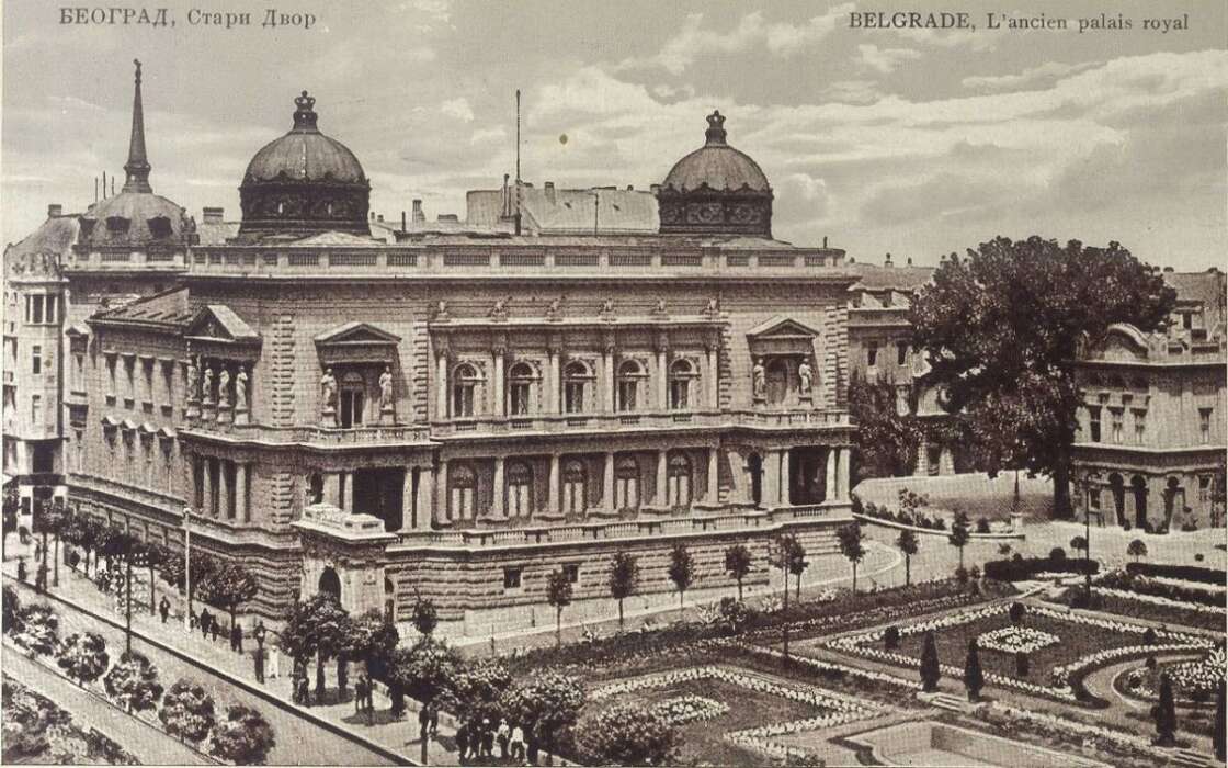 Стари двор, зграду у духу академизма и с декорацијом античког, ренесансног и барокног порекла Александар Бугарски је урадио на основу замисли и према упутствима краља Милана Обреновића. Здање су првобитно красиле и две велике куполе са позлаћеним крунама на врху, али је оно тешко оштећено у оба светска рата па данашњи изглед Двора само делимично подсећа на оно што је Бугарски замислио иако је у основи задржан првобитни распоред и изглед.