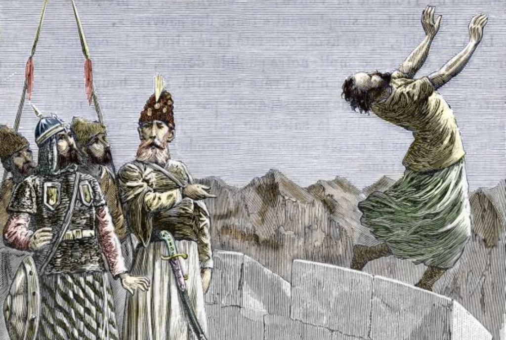 Агент по имену Бу Тахир, већ је био послат на веома опасан задатак – његов циљ био је да се инфилтрира у двор Селџука и убије везира Нитама ал Мулка, највећег непријатеља исмаилија. Прерушен у мистика, Тахир је успео да приђе везиру и на очиглед гарде убио га је убодом ножем у срце.