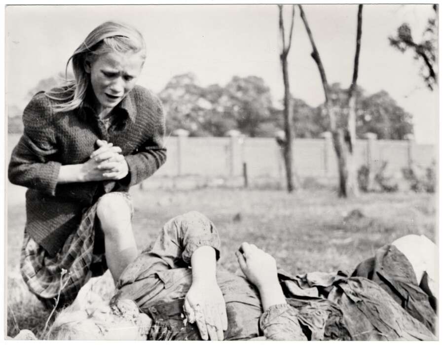 Тринаестог септембра 1939. код Варшаве. Девојке на њиви ваде кромпир, изнад њих налећу авиони Вермахта, пуцњава. Анђа пада на земљу. Поред ње клечи њена сестра. То је прича фотографије коју је снимио амерички фотограф.